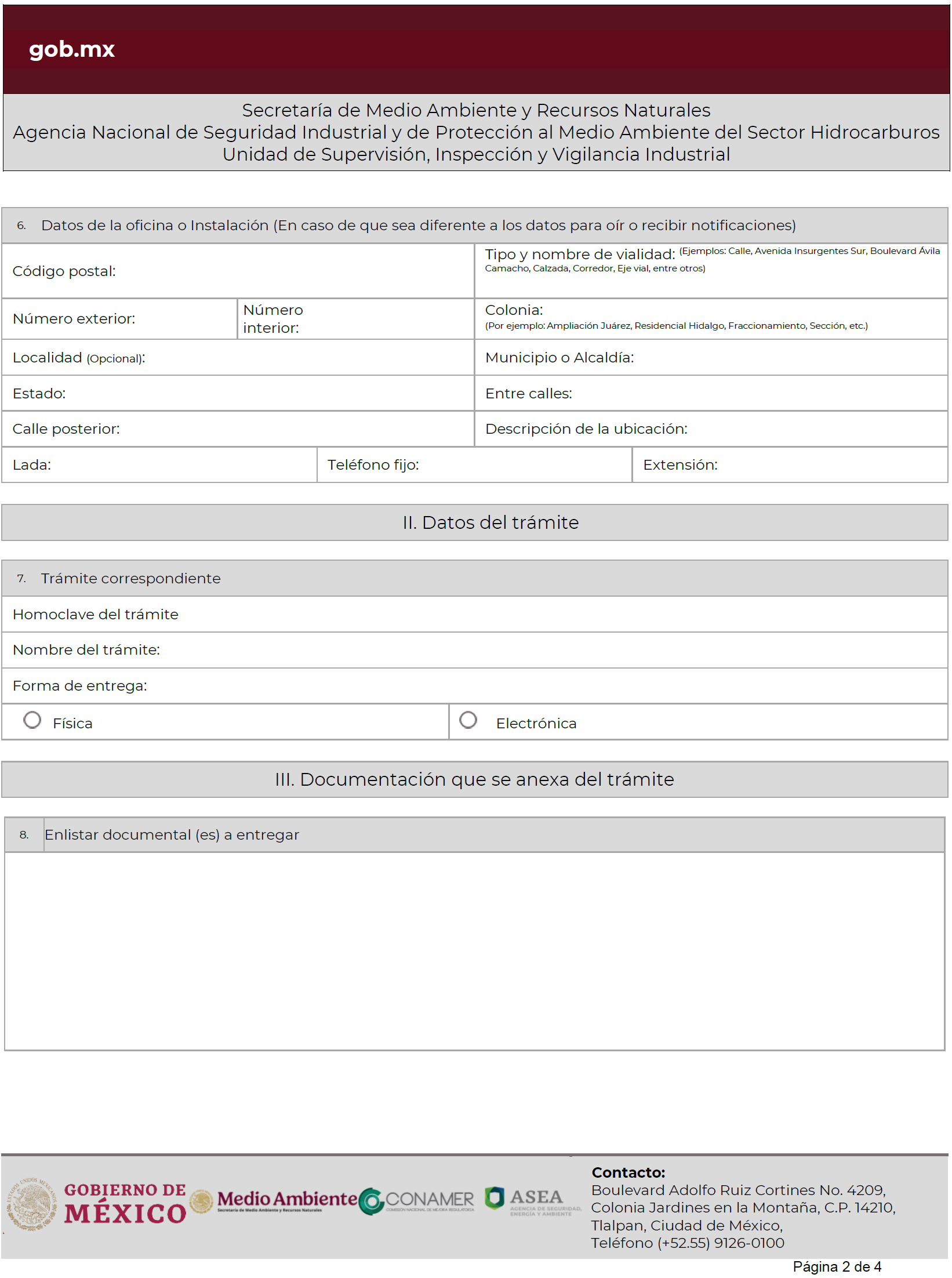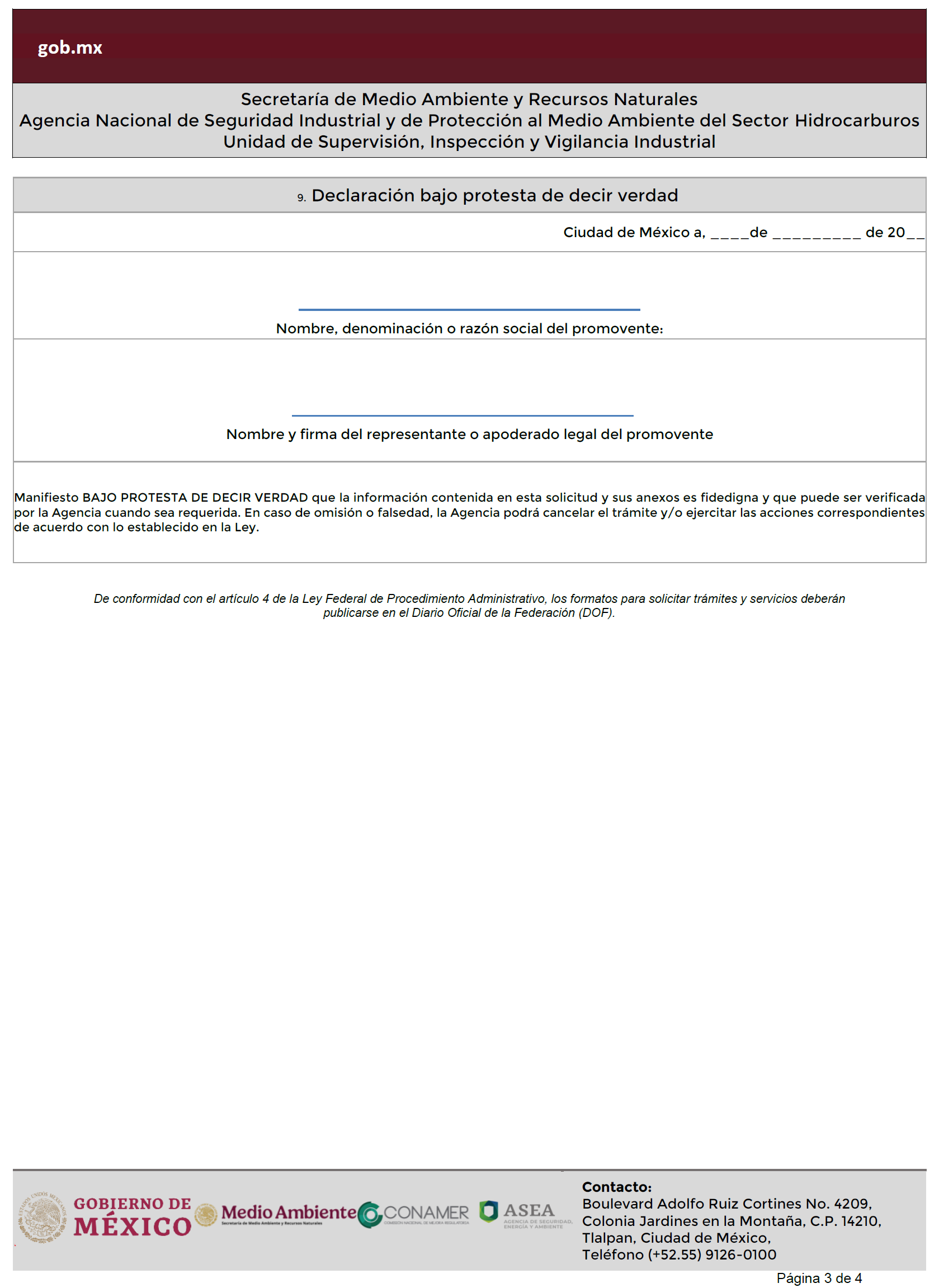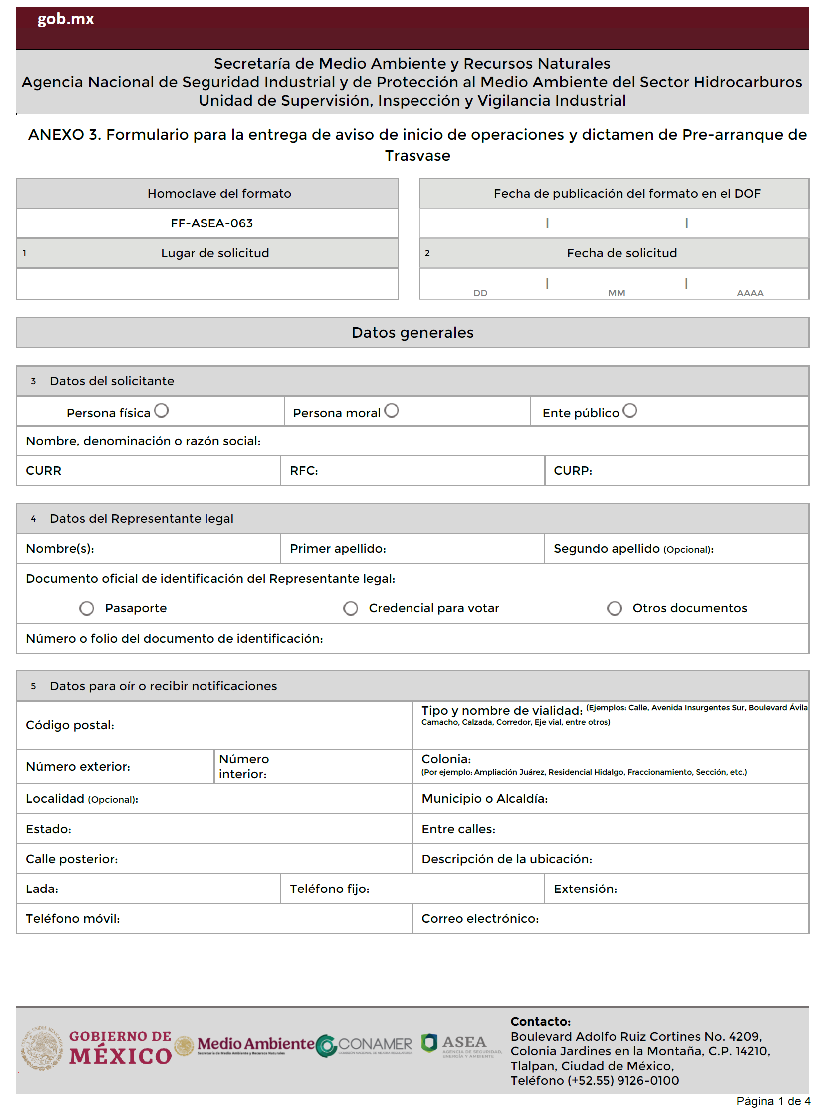 | 10 | ASEA-02-008-A | Aviso de inicio de operaciones del Sector Hidrocarburos |