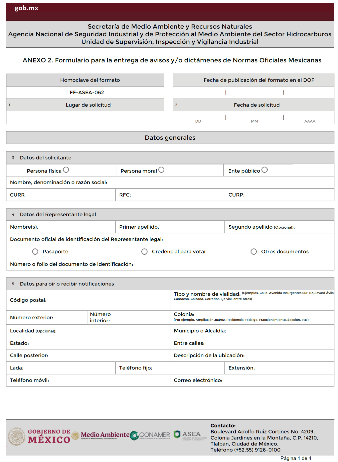 | 13 | ASEA-02-009-A | Aviso de presentación anual del dictamen de operación y mantenimiento del sector hidrocarburos |