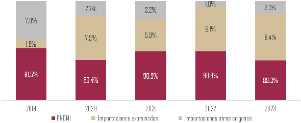 e. La PNOMI proyectada para 2024 y 2025 fue calculada como la resta de las importaciones totales al CNA.