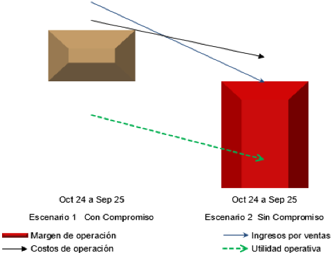 g. La eliminación de los compromisos causaría una caída en los siguientes indicadores de la rama de producción nacional: precio nacional 42%, producción 11%, POMI 12%, ventas al mercado interno 32%, empleo y salarios 11%, utilización de la capacidad instalada 8 puntos porcentuales, y participación de mercado 7 puntos porcentuales. Los resultados financieros disminuirían 233%, incluso volviéndose pérdida operativa, debido a que los ingresos por ventas caerían 61%, mientras que los costos de operación lo harían en 32%, lo que daría lugar a un descenso del margen operativo de 63.4 puntos porcentuales, pues pasaría de representar 14.3% en el escenario con los compromisos vigentes a un margen 49% negativo en el escenario sin los compromisos vigentes.