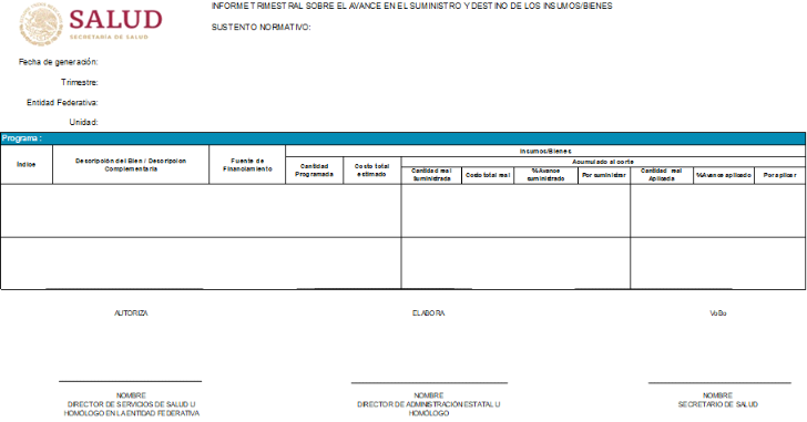 | 1 | VIH y otras ITS | 12.3.1 | Ramo 12 | Fórmula para lactantes (Sucedáneo de Leche Humana de Termino). Polvo o líquido. Energía - Mínimo /100 mL 60 kcal Máximo /100 mL 70 kcal. Energía - Mínimo /100 mL 250 kcal Máximo /100 mL 295 kcal. Vitaminas. Vitamina A (expresados en retinol) Mínimo/100 kca 200 U.I. o 60 µg, Máximo/100 kcal 600 U.I. o 180 g. NSR/100 kcal En caso de productos en polvo debería procurarse conseguir NSR más bajo Vitamina D Mínimo/100 kcal 1 µg o 40 U.I., Máximo/100 kcal 2,5 µg o 100 U.I. En caso de productos en polvo debería procurarse conseguir NSR más bajo. Vitamina C (Ac. ascórbico) Mínimo/100 kcal 10 mg, Máximo/100 kcal S. E., NSR/100 kcal 70 mg. Vitamina B Tiamina (B1) Mínimo/100 kcal 60 µg Máximo/100 kcal S. E. NSR/100 kcal 300 µg. Riboflavina (B2) Mínimo/100 kcal 80 µg Máximo/100 kcal S. E. NSR/100 kcal 500 µg. Niacina (B3) Mínimo/100 kcal 300 µg Máximo/100 kcal S. E. NSR/100 kcal 1 500 µg. Piridoxina (B6) Mínimo/100 kcal 35 µg Máximo/100 kcal S. E. NSR/100 kcal 175 µg. Ácido fólico (B9) Mínimo/100 kcal 10 µg Máximo/100 kcal S. E. NSR/100 kcal 50 µg. Ácido pantoténico (B5) Mínimo/100 kcal 400 µg Máximo/100 kcal S. E. NSR/100 kcal 2 000 µg. Cianocobalamina (B12) Mínimo/100 kcal 0,1 µg Máximo/100 kcal S. E. NSR/100 kcal 1,5 µg. Biotina (H) Mínimo/100 kcal 1,5 µg Máximo/100 kcal S. E. NSR/100 kcal 10 µg. Vitamina K1 Mínimo/100 kcal 4 µg Máximo/100 kcal S. E. NSR/100 kcal 27 µg. Vitamina E (alfa tocoferol equivalente) Mínimo/100 kcal 0,5 mg Máximo/100 kcal S. E. NSR/100 kcal 5 mg. Nutrimentos inorgánicos (minerales y elementos traza) Sodio (Na) Mínimo/100 kcal 20 mg Máximo/100 kcal 60 mg NSR/100 kcal -. Potasio (K) Mínimo/100 kcal 60 mg Máximo/100 kcal 180 mg NSR/100 kcal -. Cloro (Cl) Mínimo/100 kcal 50 mg Máximo/100 kcal 160 mg NSR/100 kcal -. Calcio (Ca) Mínimo/100 kcal 50 mg Máximo/100 kcal S. E. NSR/100 kcal 140 mg. Fósforo (P) Mínimo/100 kcal 25 mg Máximo/100 kcal S. E. NSR/100 kcal 100 mg. La relación CaP Mínimo/100 kcal 11 Máximo/100 kcal 21. Magnesio (Mg) Mínimo/100 kcal 5 mg Máximo/100 kcal S. E. NSR/100 kcal 15 mg. Hierro (Fe) Mínimo/100 kcal 1 mg Máximo/100 kcal 2 mg. Yodo (I) Mínimo/100 kcal 10 µg Máximo/100 kcal S. E. NSR/100 kcal 60 µg. Cobre (Cu) Mínimo/100 kcal 35 µg Máximo/100 kcal S. E. NSR/100 kcal 120 µg. Cinc (Zn) Mínimo/100 kcal 0,5 mg Máximo/100 kcal S. E. NSR/100 kcal 1,5 mg. Manganeso (Mn) Mínimo/100 kcal 1 µg Máximo/100 kcal S. E. NSR/100 kcal 100 µg. Selenio (Se) Mínimo/100 kcal 1 µg Máximo/100 kcal S. E. NSR/100 kcal 9 µg. Colina Mínimo/100 kcal 14 mg Máximo/100 kcal S. E. NSR/100 kcal 50 mg. Mioinositol (Inositol) Mínimo/100 kcal 4 mg Máximo/100 kcal S. E. NSR/100 kcal 40 mg. L-Carnitina (Carnitina) Mínimo/100 kcal 1,2 mg Máximo/100 kcal 2,3 mg. Taurina Mínimo/100 kcal 4,7 mg Máximo/100 kcal 12 mg. Nucleótidos **) Mínimo/100 kcal 1,9 mg Máximo/100 kcal 16 mg NSR/100 kcal -. Fuente de proteína Contendrá los aminoácidos esenciales. Leche de vaca Proteínas Totales Mínimo/100 kcal 1,8 g Máximo/100 kcal 3,0 g NSR/100 kcal -. Lípidos y ácidos grasos Grasas Mínimo/100 kcal 4,4 g Máximo/100 kcal 6 g NSR/100 kcal - . ARA Mínimo/100 kcal 7 mg Máximo/100 kcal S.E. DHA Mínimo/100 kcal 7 mg Máximo/100 kcal S.E. NSR/100 kcal (0,5 % de los ácidos grasos). Relación ARA DHA Mínimo/100 kcal 11 Máximo/100 kcal 21. Ácido linoléico Mínimo/100 kcal 300 mg Máximo/100 kcal S. E. NSR/100 kcal 1 400 mg. Ácido alfa-linolénico Mínimo/100 kcal 50 mg Máximo/100 kcal S. E. -. Hidratos de carbono. Hidratos de carbono Mínimo/100 kcal 9 g Máximo/100 kcal 14 g NSR/100 kcal -. Disposiciones Generales La proporción de ácido linoleico/alfa-linolénico mínimo 51, máximo 151 De manera opcional, la fuente de proteína podrá contener los aminoácidos esenciales (valina, leucina, isoleucina, treonina, lisina, metionina, fenilalanina y triptofano, y otros, regulados en la NORMA Oficial Mexicana NOM-131-SSA1- 2012) y en caso de ser adicionados se listarán en la ficha técnica. El contenido de ácidos grasos trans no seráµ superior al 3% del contenido total de ácidos grasos en las fórmulas para lactantes. En las fórmulas para lactantes sólo podrán añadirse almidones naturalmente exentos de gluten precocidos y/o gelatinizados hasta un máximo de 30% del contenido total de hidratos de carbono y hasta un máximo de 2 g/100 ml. En las fórmulas para lactantes debe evitarse el uso de sacarosa, así como la adición de fructosa como ingrediente, salvo cuando sea necesario por justificación tecnológica. En las fórmulas para lactantes podrán añadirse otros nutrimentos/ingredientes normalmente presentes en la leche materna o humana en cantidad suficiente con la finalidad de lograr el efecto nutrimental o fisiológico de ésta, sobre la base de las cantidades presentes en la leche materna y para asegurarse que sea adecuado como fuente única de la nutrición del lactante. Su idoneidad e inocuidad debe estar demostrada científicamente. Se debe contar con evidencia científica que demuestre la utilidad de los nutrimentos/ingredientes opcionales que se utilicen y estar a disposición de la Secretaría de Salud cuando ésta lo solicite. Las fórmulas que contengan más de 1,8 g de proteínas por cada 100 kcal, deben incrementar el contenido de piridoxina en al menos 15 µg de piridoxina por cada gramo de proteína arriba de dicho valor. En la fórmula lista para ser consumida de acuerdo con las instrucciones descritas en la etiqueta. Si se añade ácido docosahexaenoico (DHA), el contenido de ácido araquidónico debe ser al menos el mismo que el de DHA y el contenido de ácido eicosapentaenoico (EPA) no debe exceder el contenido de DHA. ** Opcional S.E. Sin Especificación NSR Nivel Superior de Referencia. Envase desde 360 g hasta 454 g polvo y medida dosificadora. | 41.5000 | 3548 | 147,242.00 |