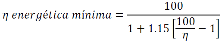 Valor de la eficiencia energética del motor eléctrico establecido en la Tabla 1 o Tabla 2 para cada potencia y número de polos, según corresponda.