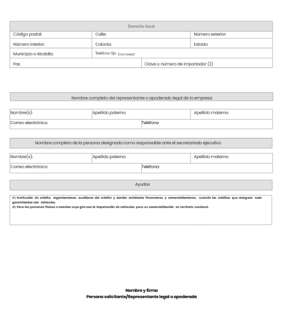 | 13 | SSPC-00-009-A | Solicitud de inscripción de vehículos en el registro por parte de personas que importan Solicitud de inscripción de vehículos en el Registro por parte de importadores de· automotores, camiones o tractocamiones destinados a permanecer en el territorio nacional. | ||