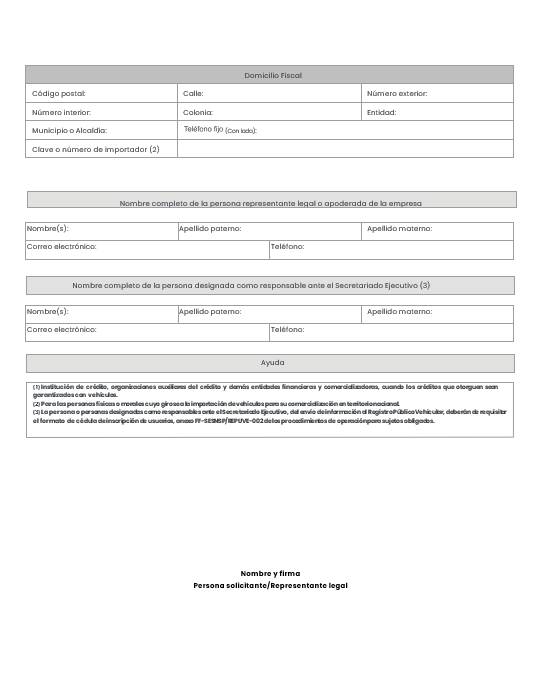 | 11 | SSPC-00-008-E | Solicitud de Inscripción de vehículos en el Registro Público Vehicular por parte de Fabricantes y Ensambladores Fabricantes y Ensambladores que importen remolques y semirremolques en territorio nacional o destinados al mercado nacional. | ||