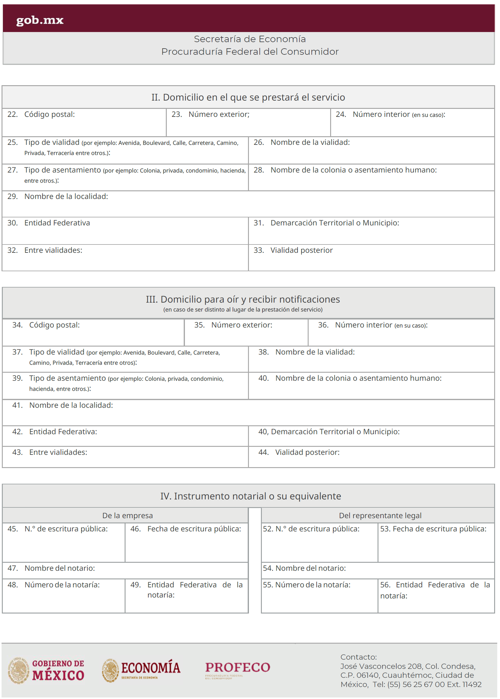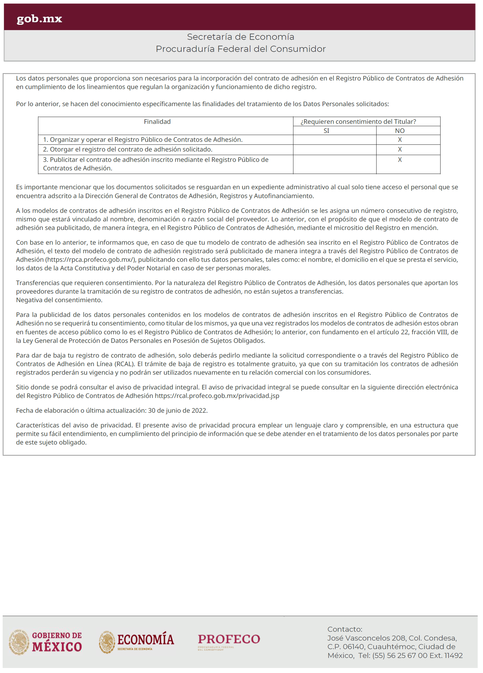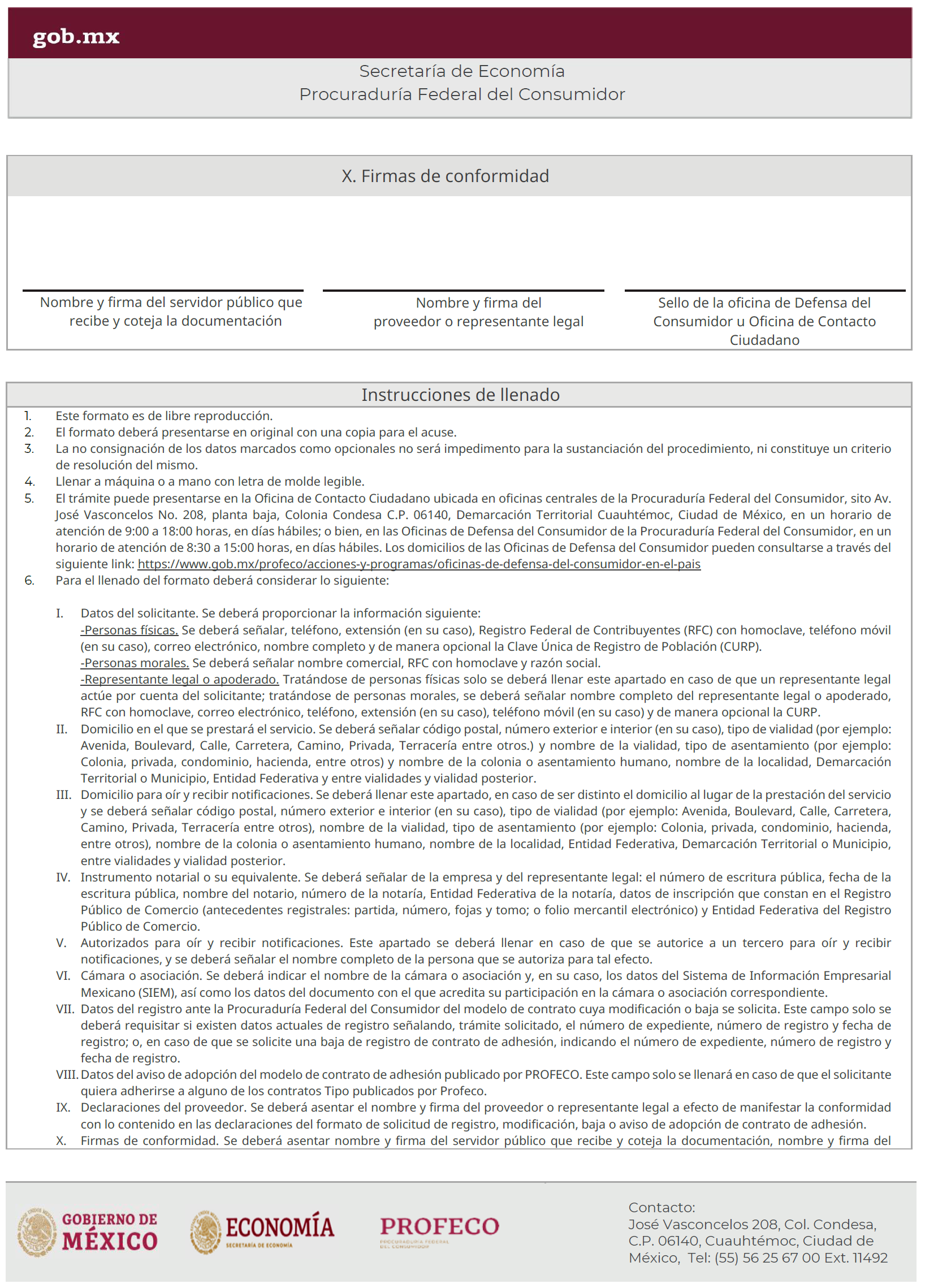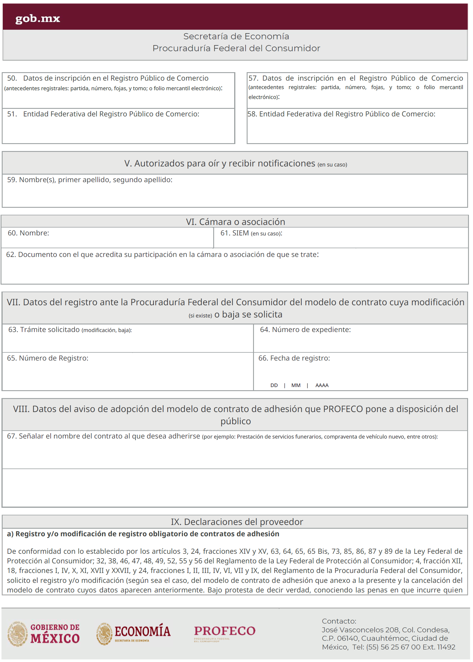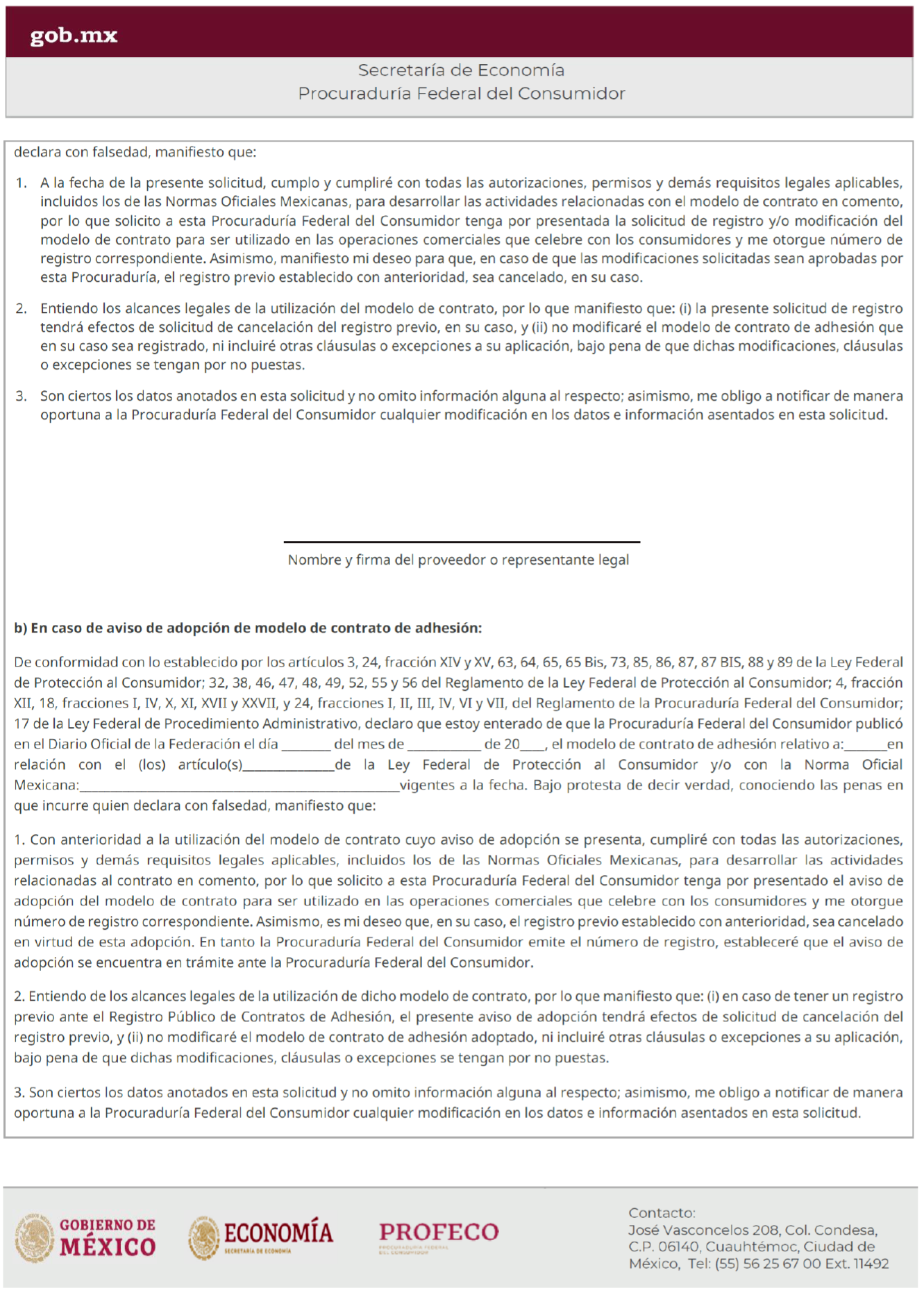 | 4 | PROFEC O-00-014-B | Solicitud de aviso de adopción de modelos de contratos de adhesión publicados por PROFECO | Personas morales |