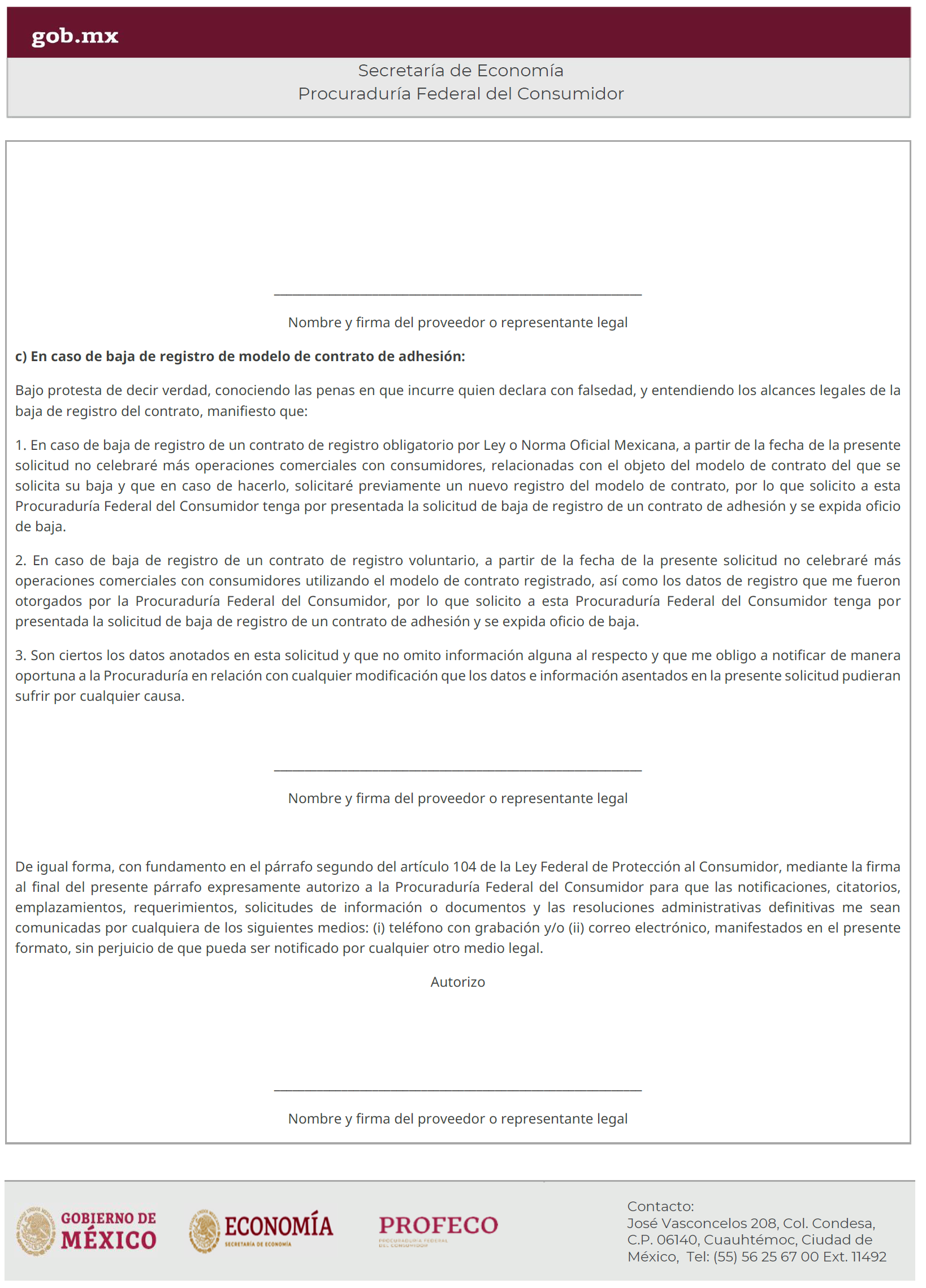 | 5 | PROFECO-00-022-A | Solicitud de baja de registro de contrato de adhesión | Persona física |
