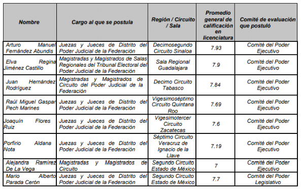 | 3 | Lenia Batres Guadarrama | Ministra de la SCJN | Ciudad de México | No gozar de buena reputación |