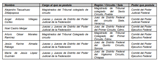 XX. Publicación de las listas de aspirantes. El 15 de diciembre de 2024 los Comités de evaluación publicaron las listas de aspirantes de los Comités de Evaluación del Poder Ejecutivo y del Poder Judicial que cumplían con los requisitos de elegibilidad para el Proceso Electoral Extraordinario para la elección de diversos cargos del Poder Judicial de la Federación 2024-2025. El Comité de Evaluación del Poder Legislativo, publicó su lista el 16 de septiembre de 2024.