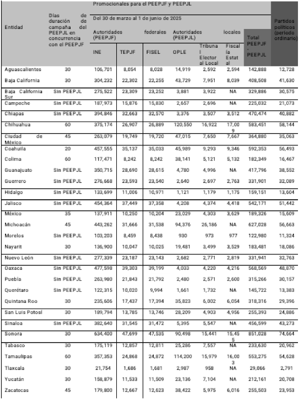 XL. Tiempos de Radio y Televisión. El 13 de enero de 2025, el Consejo General aprobó mediante Acuerdo INE/CG04/2025, los criterios relativos a la distribución del tiempo del Estado en radio y televisión para el PEEPJF 2024-2025, en concurrencia con los Procesos Electorales Locales en los estados de Durango y Veracruz 2024-2025, período ordinario y, en su caso, Procesos Electorales Extraordinarios para la elección de personas juzgadoras de los Poderes Judiciales Locales.