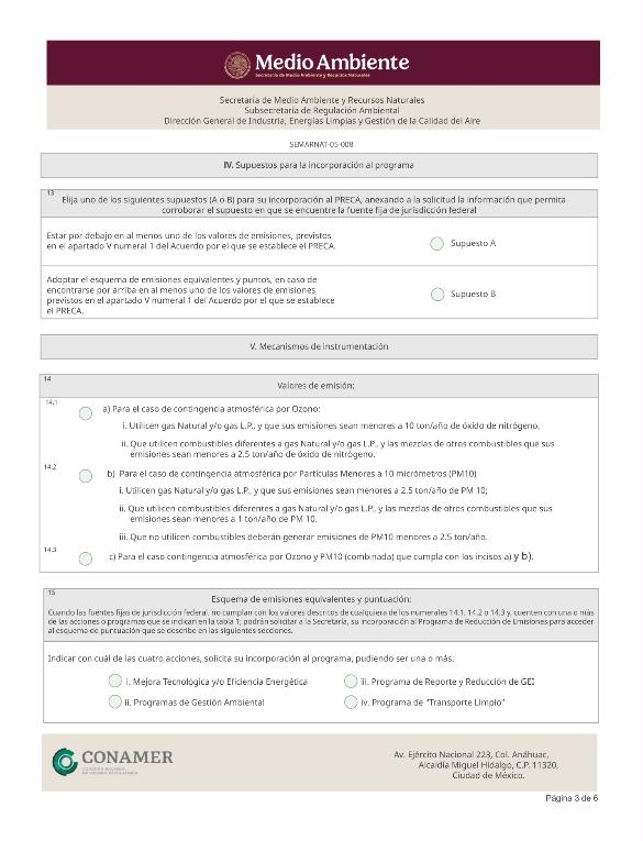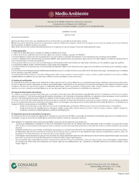 2. SEMARNAT-05-008, Incorporación al Programa de Reducción de Emisiones Contaminantes a la Atmósfera (PRECA).