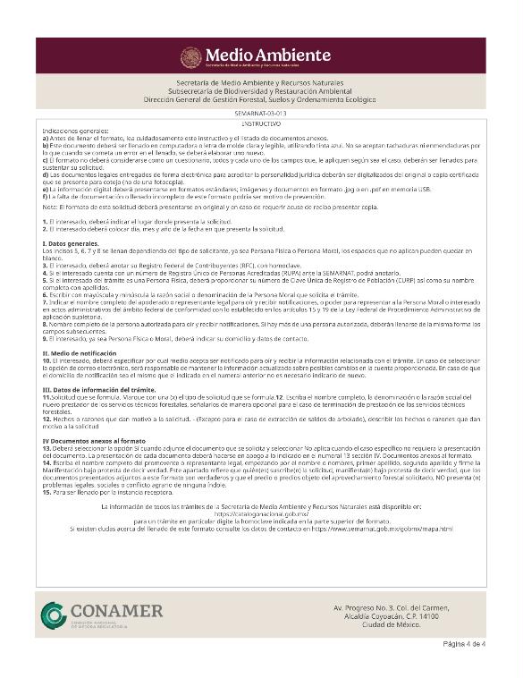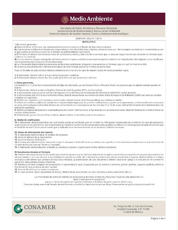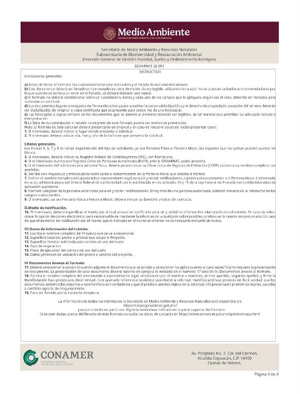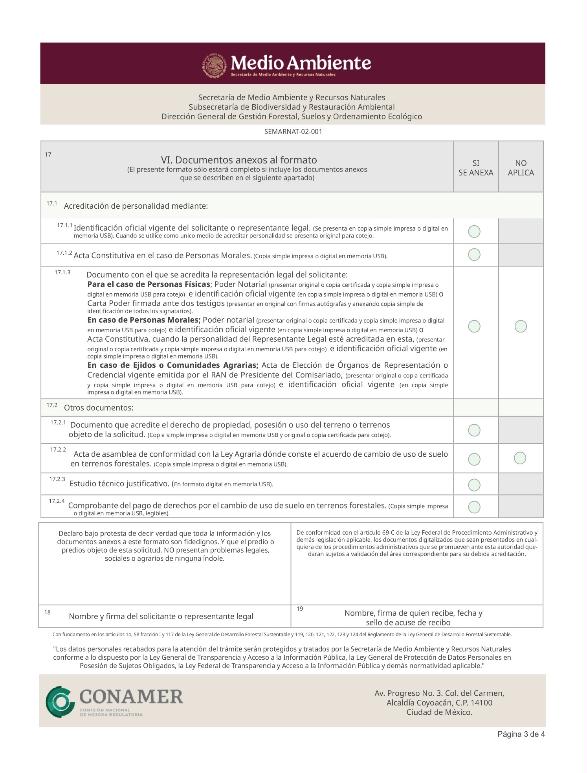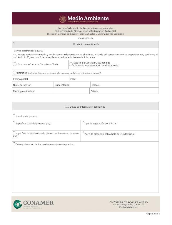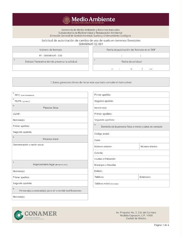 1. SEMARNAT-02-001, Solicitud de autorización de cambio de uso de suelo en terrenos forestales.