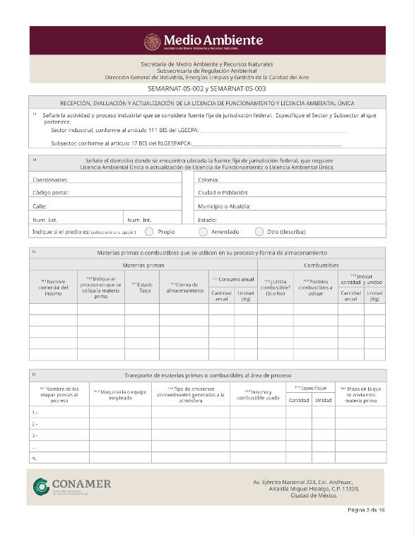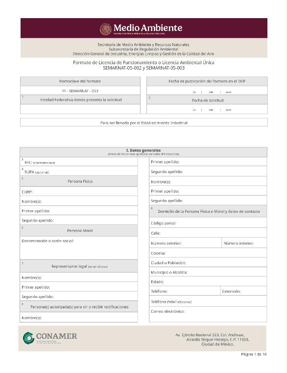 | FF-SEMARNAT-033 | SEMARNAT-05-002 | Licencia de Funcionamiento o Licencia Ambiental Única | 03 de septiembre de 2015 |