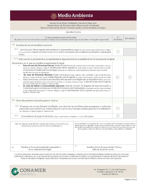 3. SEMARNAT-03-013, Autorización para adelantar el plan de corta, alterar el calendario aprobado o modificar el programa de manejo forestal.