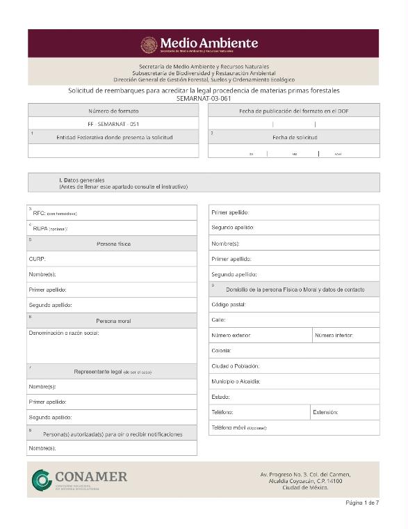 | FF-SEMARNAT-051 | SEMARNAT-03-061 | Solicitud de reembarques forestales para acreditar la legal procedencia de materias primas forestales | 15 de diciembre de 2015 |