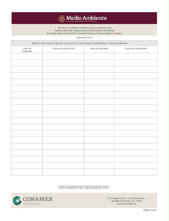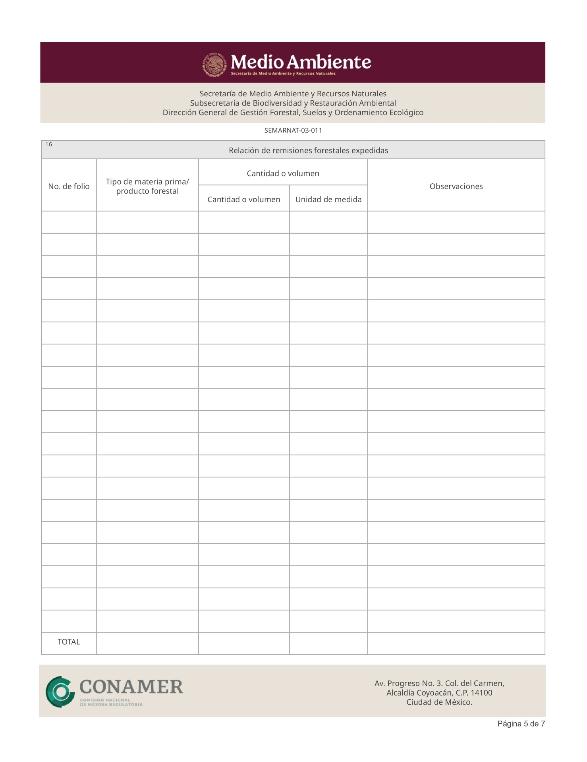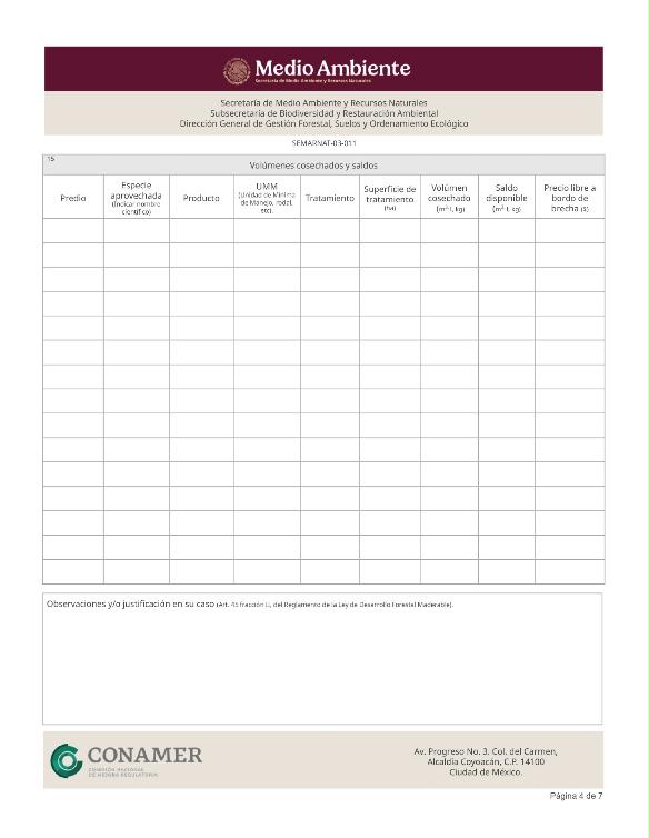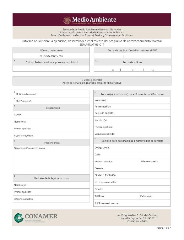 | FF-SEMARNAT-058 | SEMARNAT-03-011 | Informe anual sobre la ejecución, desarrollo y cumplimiento del programa de aprovechamiento forestal | 17 de octubre de 2016 |