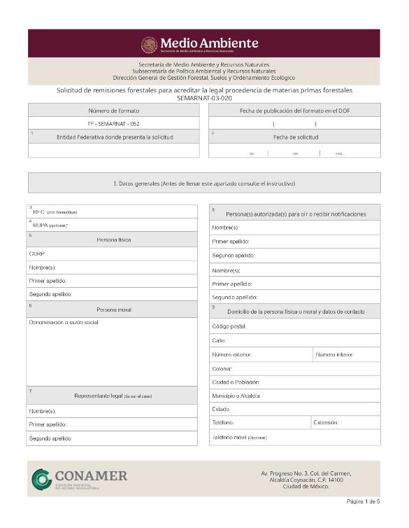 | FF-SEMARNAT-052 | SEMARNAT-03-020 | Solicitud de remisiones forestales para acreditar la legal procedencia de materias primas forestales | 15 de diciembre de 2015 |