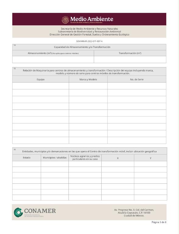 14. SEMARNAT-2022-071-007-A, Solicitud de Autorización para el funcionamiento de centros de almacenamiento y transformación de materias primas forestales, y centros móviles de transformación de productos forestales.