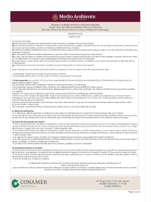 5. SEMARNAT-03-020-B, Solicitud de remisiones forestales para acreditar la legal procedencia de materias primas forestales. Modalidad: Trámite Subsecuente.