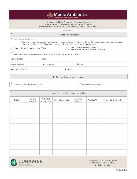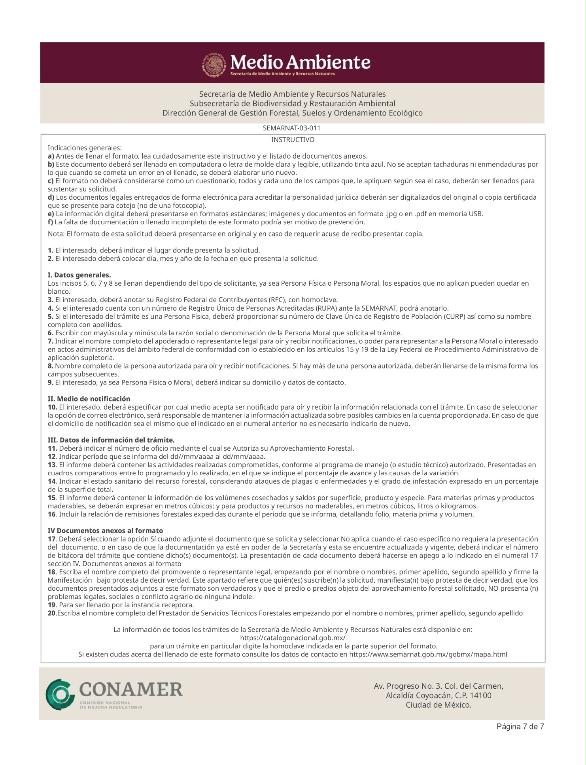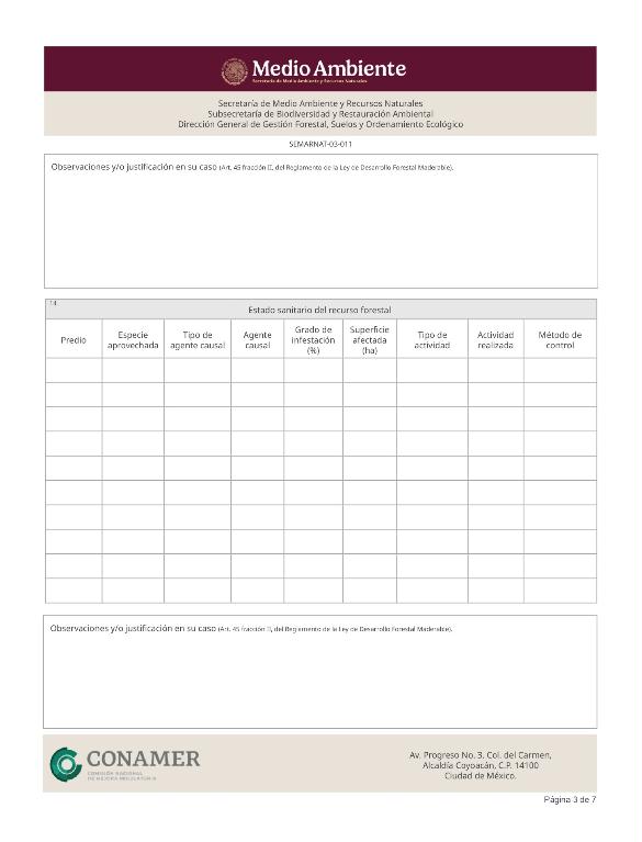 2. SEMARNAT-03-011, Informe anual sobre la ejecución, desarrollo y cumplimiento del programa de aprovechamiento forestal.