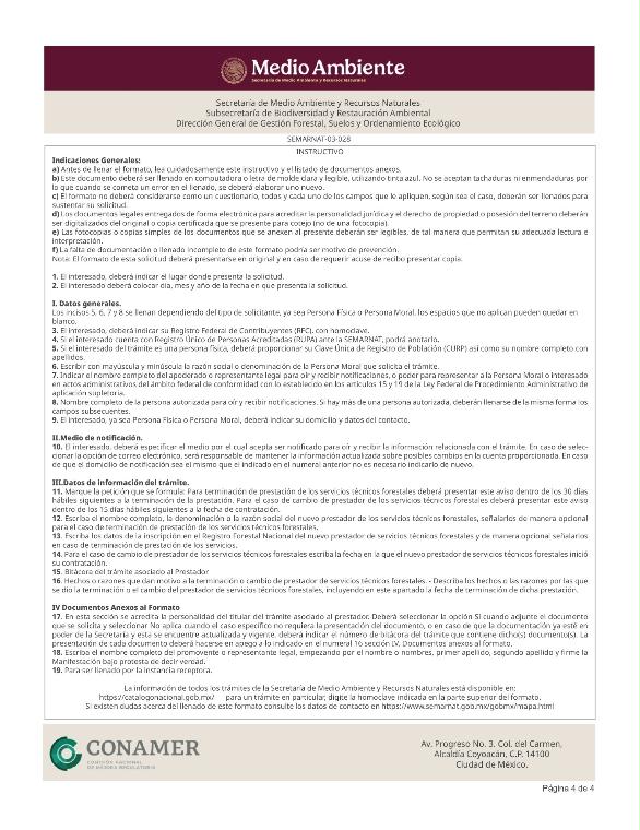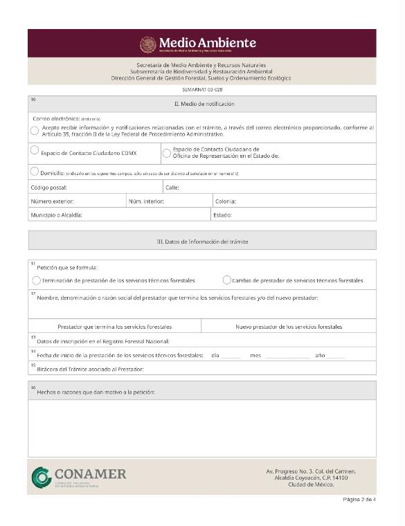 6. SEMARNAT-03-028, Aviso de terminación y/o cambio de prestador de servicios técnicos forestales.