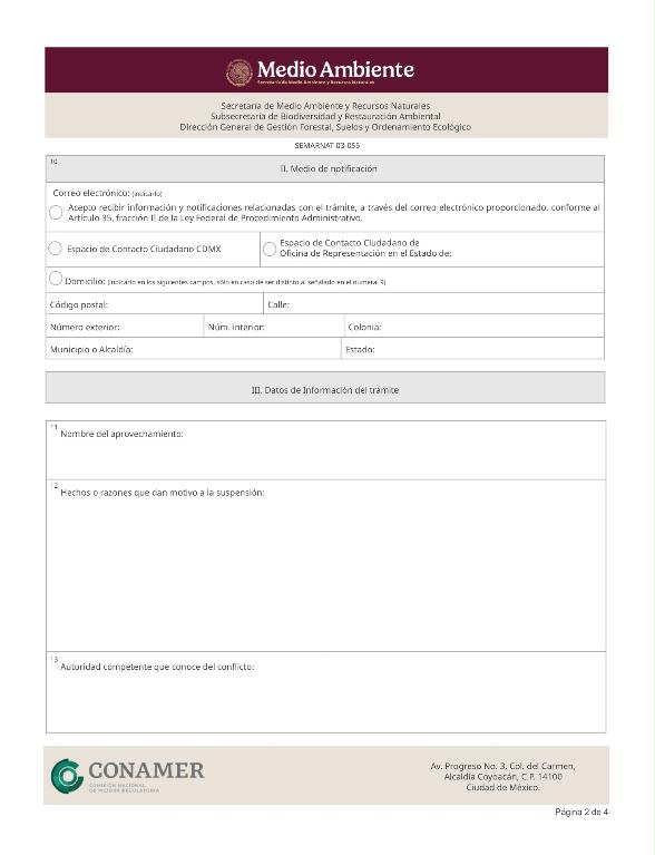 8. SEMARNAT-03-055, Solicitud de suspensión de autorización de aprovechamiento forestal.