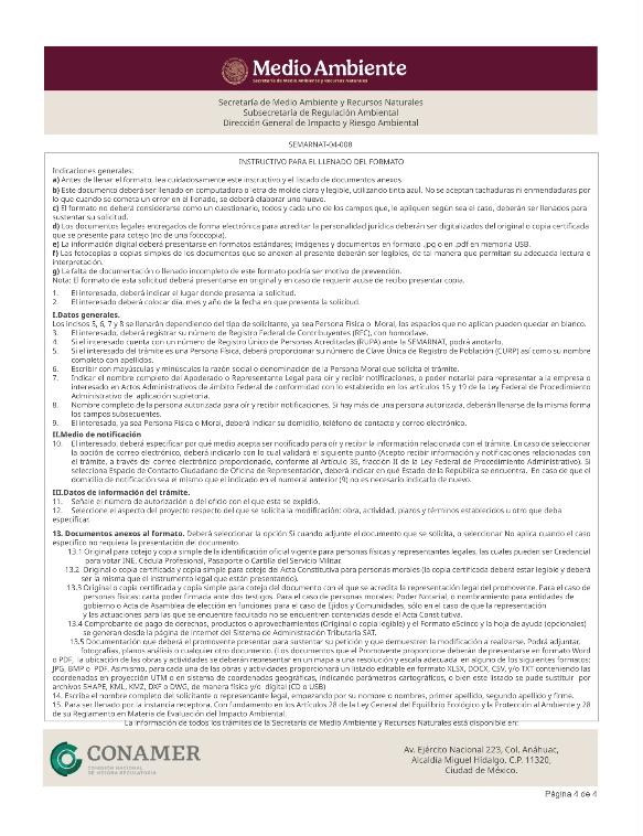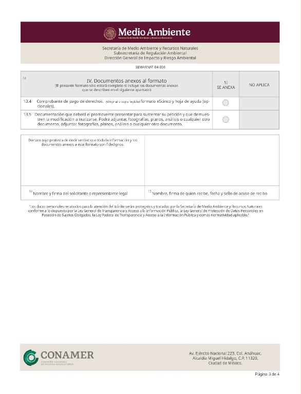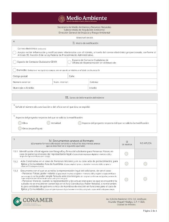 3. SEMARNAT-04-008, Modificaciones de la obra, actividad o plazos y términos establecidos a proyectos autorizados en materia de impacto ambiental.