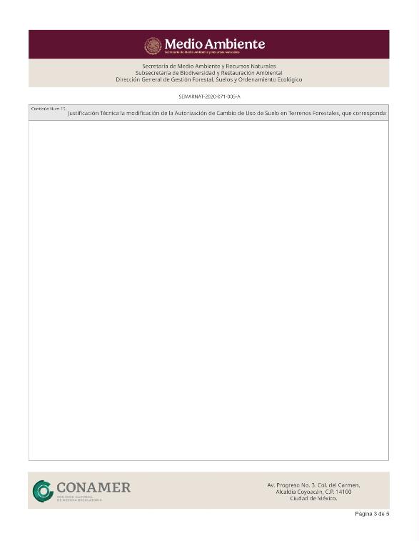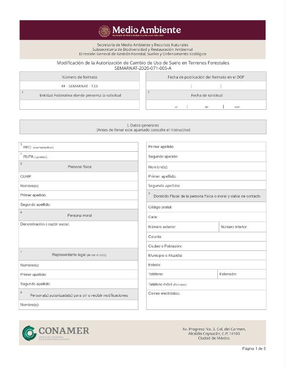 | FF-SEMARNAT133 | SEMARNAT-2020-071-005-A | Modificación de la autorización de cambio de uso de suelo en terrenos forestales |