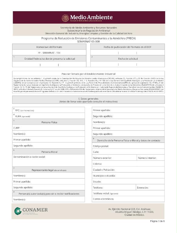 | FF-SEMARNAT-134 | SEMARNAT-05-008 | Incorporación al Programa de Reducción de Emisiones Contaminantes a la Atmósfera (PRECA) |