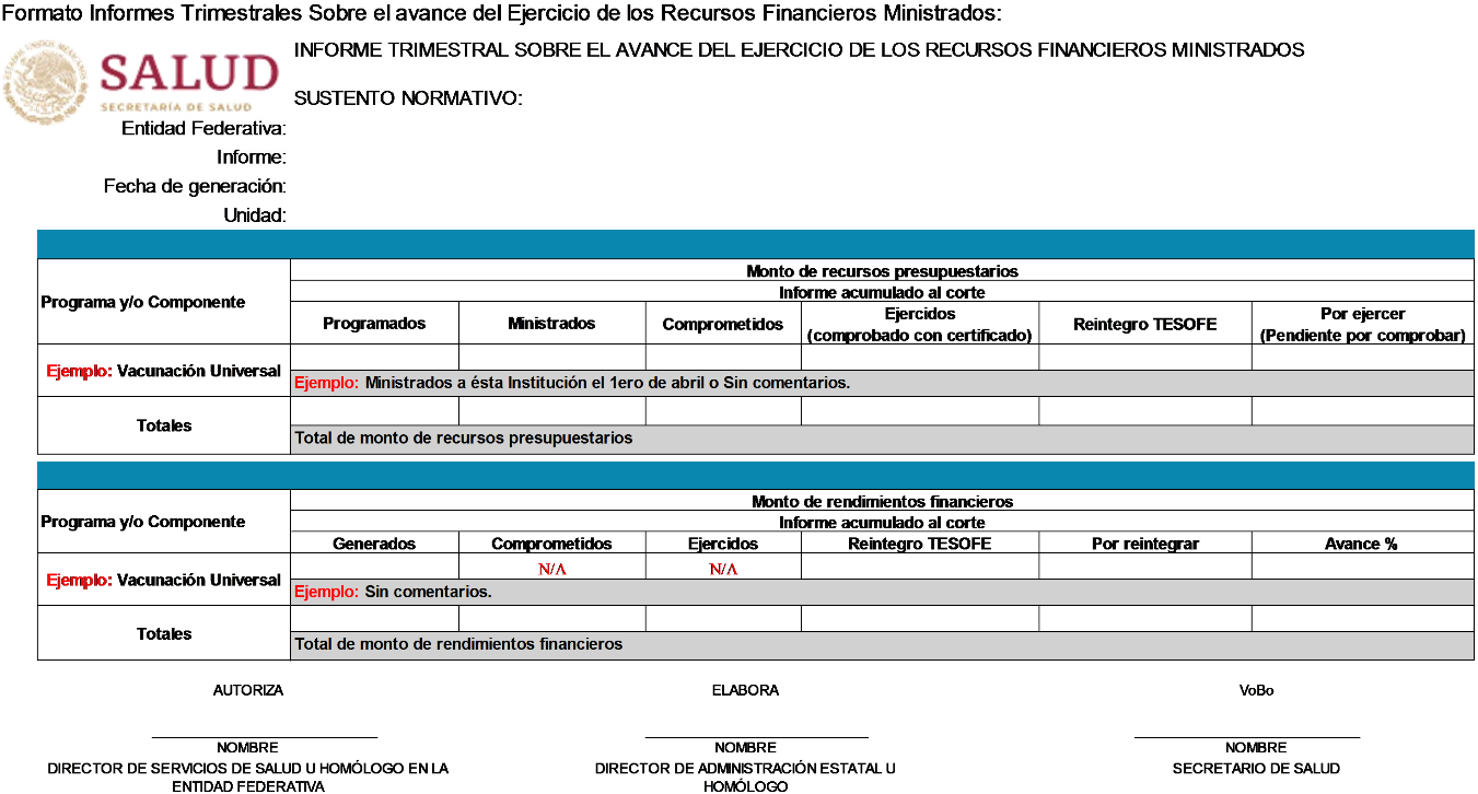 | | SUBSECRETARÍA DE POLÍTICAS DE SALUD Y BIENESTAR POBLACIONAL UA/OAD: . PROGRAMA: . Ejercicio Fiscal: . Entidad Federativa: . |