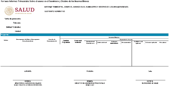 | ACTA DE CONCILIACIÓN DE INSUMOS 2025 En la Ciudad de México, a 15 de marzo de 2026, __(#Titular de la UA/OAD)__, (#Representantes Estatales), con el objeto realizar la conciliación respecto de las cantidades de insumos ministrados por la Secretaría de Salud al __(#Entidad Federativa)__ en adelante __"(#Denominación de la Entidad Federativa)"_ , para el __(#Nombre del Programa)__ con motivo de la suscripción del Convenio Específico de Coordinación en Materia de Transferencia de Insumos y Ministración de Recursos Presupuestarios Federales para Realizar Acciones en Materia de Salud Pública en Las Entidades Federativas, Convenio SaNAS, para el ejercicio fiscal 2025 entre el Ejecutivo Federal por conducto de la Secretaría de Salud, en adelante "LA SECRETARÍA" y __"(#Denominación de la Entidad Federativa)"_, hacen constar lo siguiente: ANTECEDENTES 1.- Con fecha _#fechaConvenioEspecífico_, "LA SECRETARÍA" y _"(#Denominación de la Entidad Federativa", celebraron, el Convenio Específico de Coordinación en Materia de Transferencia de Insumos y Ministración de Recursos Presupuestarios Federales para Realizar Acciones en Materia de Salud Pública en Las Entidades Federativas, Convenio SaNAS 2025, con el objeto de ministrar recursos presupuestarios federales y/o insumos federales a _"(#Denominación de la Entidad Federativa, a fin de coordinar su participación con el Ejecutivo Federal, en términos del artículo 9 de la Ley General de Salud, que permitan a _"(#Denominación de la Entidad Federativa" , la adecuada instrumentación, así como fortalecer la integridad de las acciones de Promoción y Prevención de la Salud. 2.- Con fecha _#fechaPrimerModificatorio_, "LA SECRETARÍA" y _"(#Denominación de la Entidad Federativa", celebraron el Convenio Modificatorio al Convenio SaNAS 2025, con el objeto de ajustar los montos de los recursos presupuestarios federales y/o insumos federales ministrados a _"(#Denominación de la Entidad Federativa". 3.- Que toda vez que al 31 de Diciembre de 2025, fecha en la que concluyó la vigencia del Convenio SaNAS 2025, no fue possible realizar la conciliación del total de los insumos ministrados por la "LA SECRETARÍA" a _"(#Denominación de la Entidad Federativa"_,contra los programados en el Convenio SaNAS 2025, y generar, en su caso, la emisión de un Convenio Modificatorio adicional a los señalados el numeral 2 del presente documento, se acuerda: ACUERDOS PRIMERO.-Que las cantidades, precios unitarios e importes definitivos de los insumos ministrados con motivo del cierre de laentrega-recepción de los insumos asignados al _#Nombre del Programa_, al 31 de Diciembre de 2025, ministrados a _"(#Denominación de la Entidad Federativa"_, con motivo de la suscripción del Convenio SaNAS 2025, son las que se muestran en el cuadro de conciliación siguiente: | |