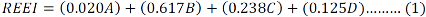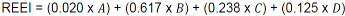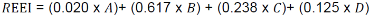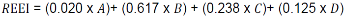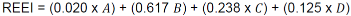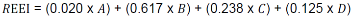 REEI=(0.020xA) + (0.617xB) + (0.238xC) + (0.125xD)