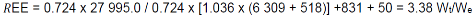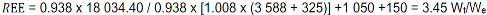 REE =0.842 x 10 211.4 / 0.842 x [1.021 x (1 727 + 325)] +33 + 125 = 4.47 Wt/We