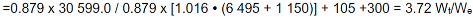 REE =0.927 x 18 249.50 / 0.927 x [1.009 x (3 645 + 325)] + 262 +150 = 4.10 Wt/We