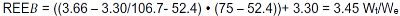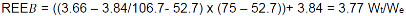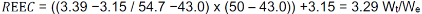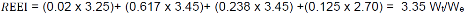 REEI = (0.02 x 3.25) + (0.617 x 3.77) + (0.238 x 4.10) +(0.125 x 3.61) = 3.82 Wt/We
