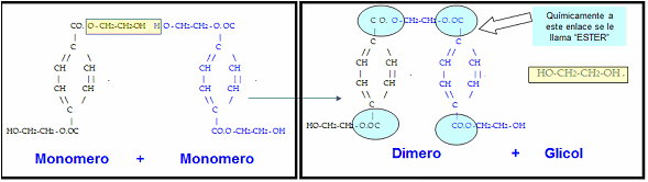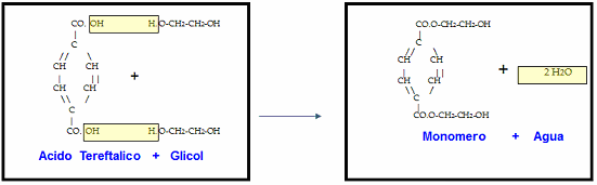 | Reacción de polimerización | | Producto polietilen tereftalato (poliéster) |