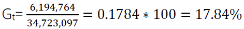 | Sustitución en método de cálculo | ((2,233,220) / 4) / (858,931)) * 100 |