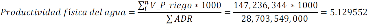 | Método de cálculo | Dónde: Volumen de producción total (toneladas) de los cultivos bajo modalidad de riego por año agrícola. Volumen de agua concesionada (m³) para los Distritos de Riego. |
