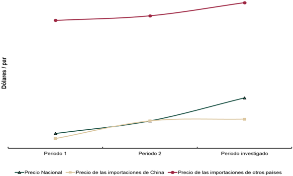 a. Las importaciones investigadas se efectuaron con márgenes de discriminación de precios de entre 0.54 y 22.50 dólares por par. En el periodo investigado, las importaciones originarias de China representaron 62.4% de las importaciones totales.
