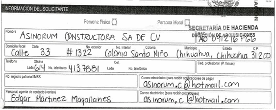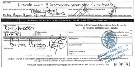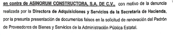 · Víctor Rubén Ibarra Retana y Edgar Martínez Magallanes, como representantes legales de Asinorum Constructora, S.A. de C.V., participaron en el registro al padrón de proveedores de bienes y servicios de la administración pública;