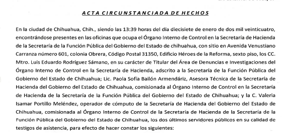 Autoridad Investigadora: Titular del Área de Investigaciones del del Órgano Interno de Control de la Secretaría de Hacienda del Estado de Chihuahua