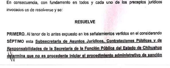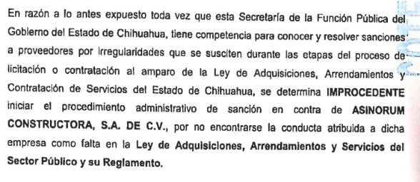 Subsecretario de Asuntos Jurídicos, Contrataciones Públicas y de Responsabilidades de la Secretaría de la Función Pública del Estado de Chihuahua, en la que determinó lo siguiente: