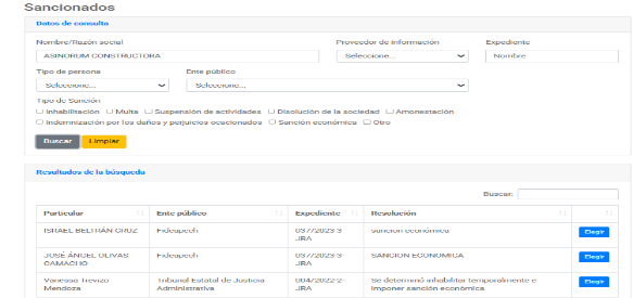 Personas presuntamente responsables: Asinorum Constructora, S.A. de C.V. y sus representantes legales Edgar Martínez Magallanes y Víctor Rubén Ibarra Retana