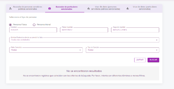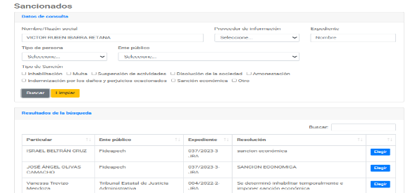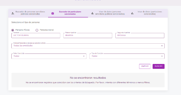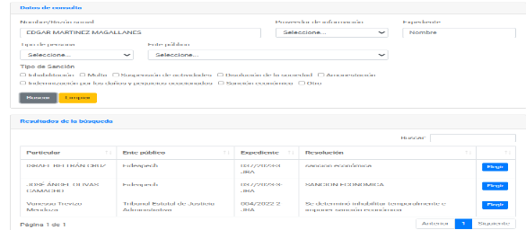 De las constancias que integran este procedimiento administrativo disciplinario, no se advierte que las personas presuntas responsables cuenten con sanciones registradas en su expediente personal, esta autoridad resolutora, al analizar los registros y bases con los que cuenta consultables en plataforma digital nacional y estatal, hace constar que a la fecha no existen registros que permitan conocer de resoluciones firmes a través de las cuales se le haya impuesto sanción por incumplimiento a las obligaciones establecidas en la Ley General de Responsabilidades Administrativas en vigor, ni tampoco que hubiese sido sancionado por una autoridad administrativa diversa al momento de incurrir en los hechos imputados, información pública que fue consultada y arrojó lo siguiente:
