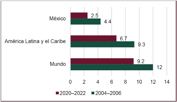 Por su parte, la Organización para la Cooperación y el Desarrollo Económicos (OCDE) y la Organización de las Naciones Unidas para la Alimentación y la Agricultura, FAO por sus siglas en inglés, destacan que los efectos del cambio climático que sigue exacerbando la intensidad de las temperaturas a nivel mundial, incrementando la posibilidad de que se presenten otros fenómenos extremos como sequía, huracanes e inundaciones, aunado a la incertidumbre geopolítica, afectarán la producción agrícola mundial y los modelos comerciales, lo que demanda sistemas alimentarios nacionales más resilientes. En este contexto, estos organismos internacionales especializados, OCDE y FAO, prevén que el comercio agrícola internacional, al vincular los sistemas alimentarios de los países mediante el traslado de los productos agrícolas de las regiones con superávit a aquellas con déficit, desempeña la función fundamental de proveer a los consumidores de todo el mundo de alimentos suficientes, sanos y nutritivos y a la vez de generar ingresos para las personas agricultoras, trabajadoras y comerciantes de la industria agrícola y alimentaria. Es decir, se resalta la importancia del comercio con una red de distribución para garantizar el acceso a la alimentación nutritiva y de calidad(6). Esta referencia deviene de un escenario internacional que se permea al contexto nacional en México.