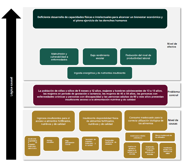 El problema público identificado -cadenas de valor agroalimentarias frágiles o vulnerables- tiene causas estructurales vinculadas a desequilibrios persistentes entre la producción, la transformación, la distribución y el acceso a los alimentos. Dichos desequilibrios impactan de manera significativa tanto a las personas productoras de pequeña escala como a la población que enfrenta carencia por acceso a la alimentación.