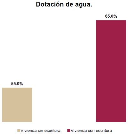 g) Incremento en los niveles de hacinamiento en las viviendas localizadas en asentamientos humanos irregulares. Aunque estos asentamientos se caracterizan por la autoproducción de las viviendas, la falta de documentos legales que acrediten la propiedad limitan la inversión familiar en su mejoramiento y ampliación, lo que incide directamente en condiciones de hacinamiento y rezago habitacional. De acuerdo con la ENIGH 2024, 27.5% de las viviendas sin escritura o título de propiedad presentaban hacinamiento (aproximadamente 1.9 millones), mientras que en las viviendas con escritura o título de propiedad, la proporción era de 15.7% (3.1 millones). Aunque en términos absolutos las viviendas escrituradas con hacinamiento son más, proporcionalmente el hacinamiento es más frecuente en viviendas sin escrituras, lo que sugiere que la regularización podría contribuir a mejorar las condiciones habitacionales.
