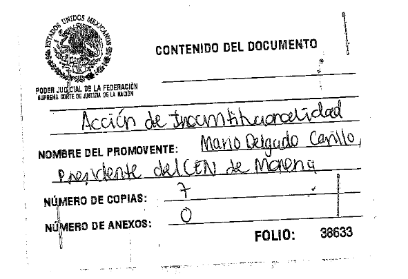 Al margen un sello con el Escudo Nacional, que dice: Estados Unidos Mexicanos.- Suprema Corte de Justicia de la Nación.- Secretaría General de Acuerdos.