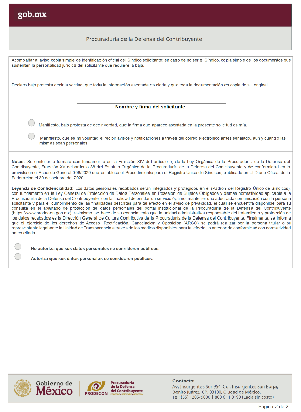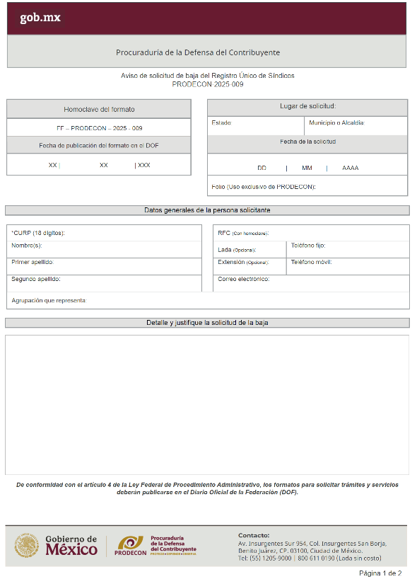 | 8 | PRODECON-00-002 | PRODECON-2025-008 | Aviso de Modificación de datos asentados en el Registro Único de Síndicos. |
