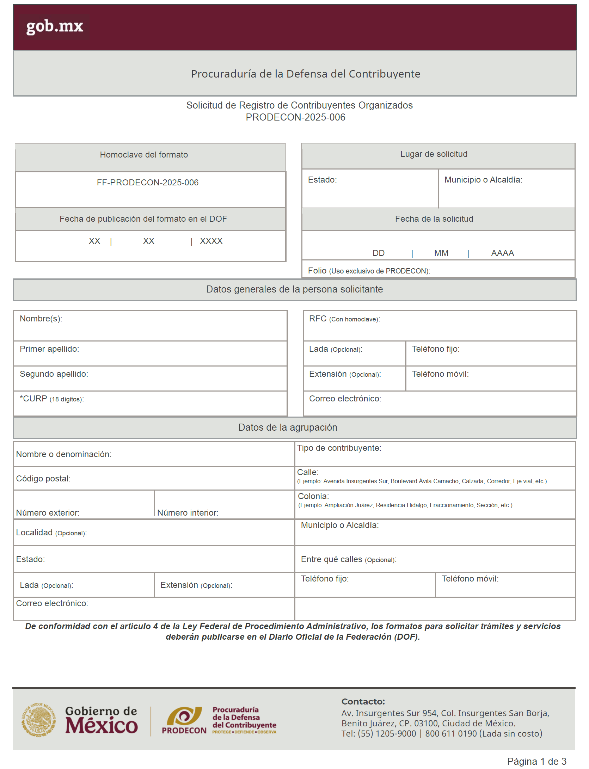 | 6 | PRODECON-2025-006 | Solicitud de Registro de Contribuyentes Organizados. | FF-PRODECON-2025-006 | Anexo VI |