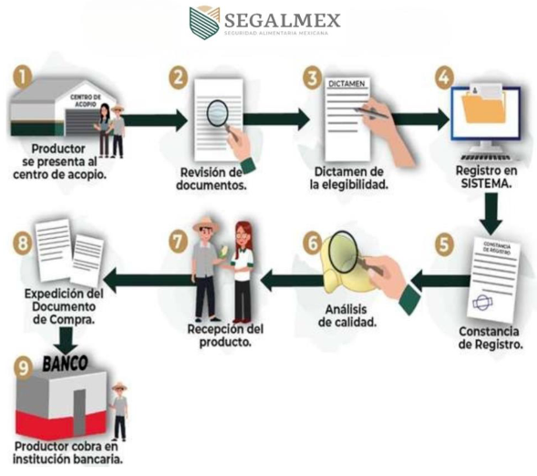 La recepción y pago de maíz, maíz nativo o criollo pigmentado y frijol de pequeños productores se llevarán a cabo en los centros de acopio mencionados, de acuerdo con el siguiente procedimiento:
